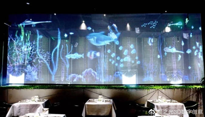 3D全息投影餐廳具有其獨特的魅力,它可以讓你時而置身海洋世界,時而有群花綻放,時而有亭臺樓閣,讓你在真實與虛構、時間與空間中品味美食、美酒、音樂人生!