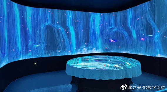 全息投影餐廳具有靈活性。室內(nèi)布置靈活,畫面內(nèi)容靈活,可采用白色墻面,或采用淺色浮雕,任意選取,圖片內(nèi)容可依季節(jié)變化,如海洋、星空、森林、海邊等,一鍵切換,非常便捷。