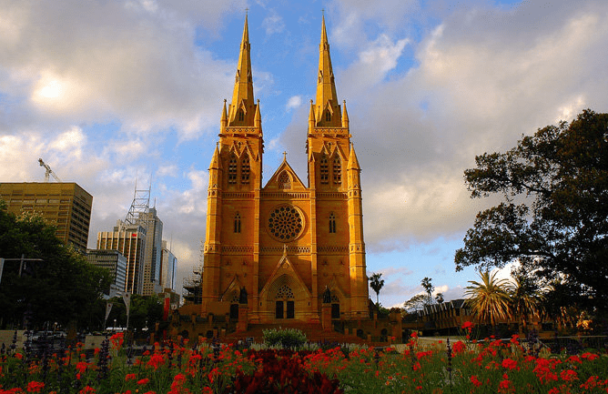 悉尼圣瑪麗大教堂被稱為"澳大利亞天主教堂之母",它位于學(xué)院街與阿爾伯特王子路的街角處,在海德公園的對(duì)面。