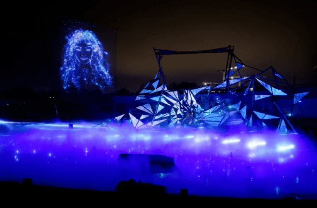 本次演出從不同形式表現(xiàn)由水、激光、影像匯集而成的夢幻與真實(shí)、科技與現(xiàn)實(shí)之間的神奇魅力。