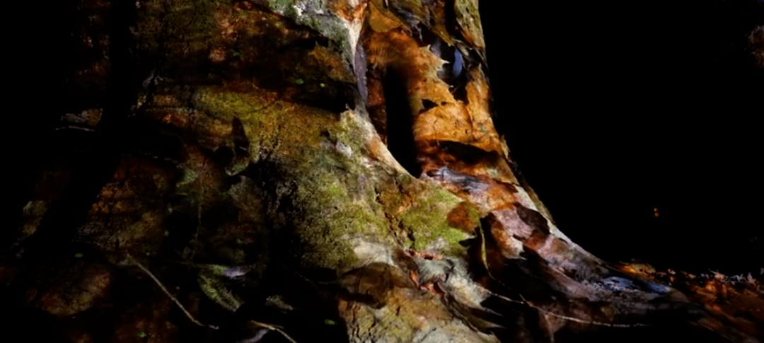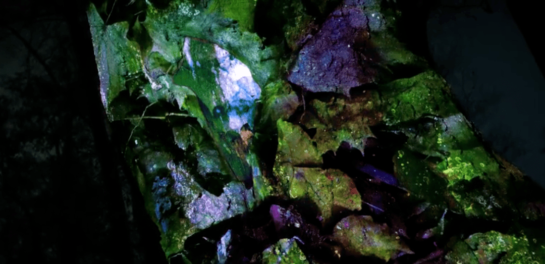 在Philipp Frankyou的作品中,他巧妙地在自然界的浮木、樹干、巖石上面進(jìn)行投影映射。