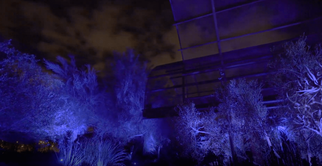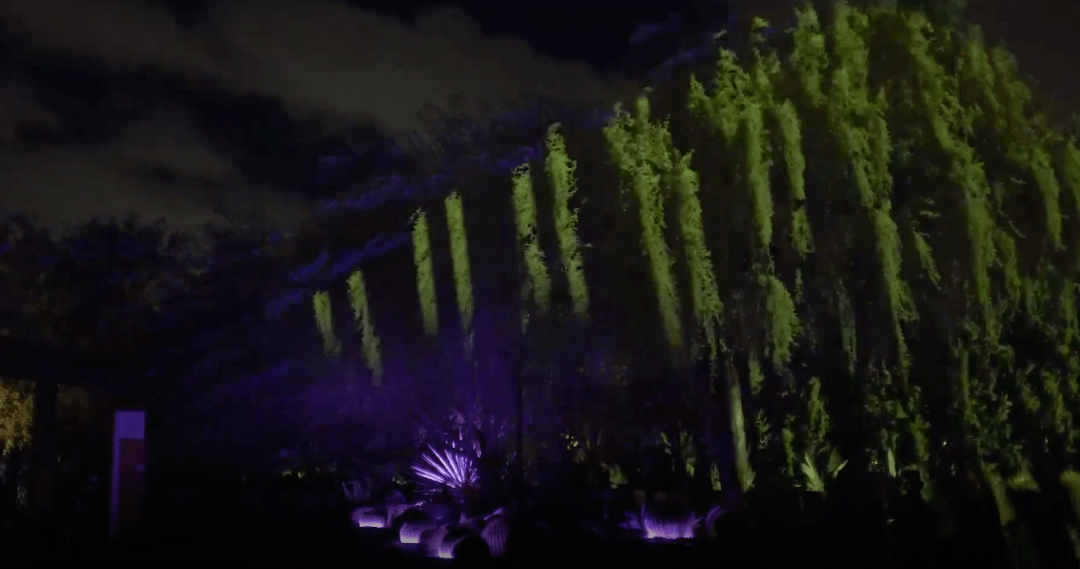 巧妙運用投影和照明,利用植物園不同的地勢特點,將夜間植物園打造得與白天截然不同。