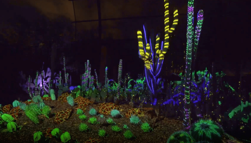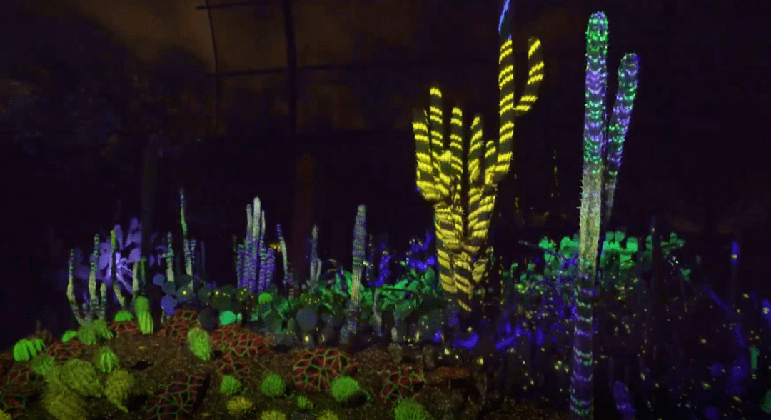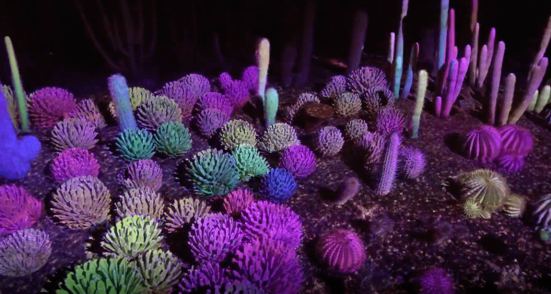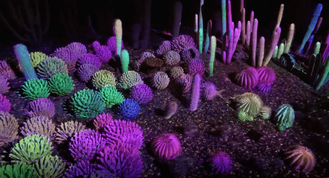 沙漠植物園成立于1937年。視覺藝術創(chuàng)意團隊 Klip Collective將光影與沙漠植物結合在一起,打造了名為 Electric Desert的獨特藝術體驗。