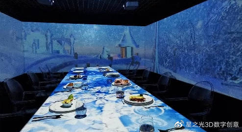 全息光影餐廳運用交互式投影技術(shù),將墻面、地面、桌面等進行融合,形成光影交互的空間,營造出一種可視化的消費場景,為品牌創(chuàng)造價值與影響力提供了有力的支撐。