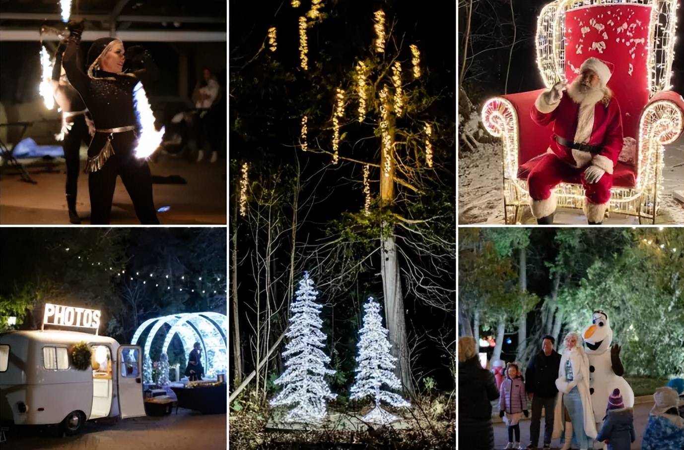 Fairway of Lights 每天晚上都會有不同的娛樂活動。 你可以與雪花公主見面;在復(fù)古的 Boler 照相亭拍照;在貨柜車內(nèi)玩游戲或乘坐假日火車等等。