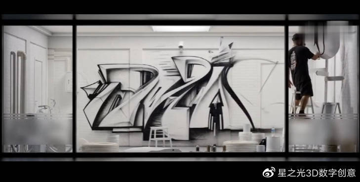 涂鴉與投射相結(jié)合,把靜態(tài)的平面藝術(shù)化為動(dòng)態(tài)的光影變換,創(chuàng)造了一種新的藝術(shù)體驗(yàn),使涂鴉藝術(shù)煥發(fā)出新的生機(jī)。